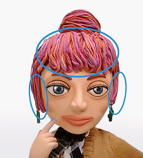 この処理の理由ですが、私のフィギュアは髪の毛にワイヤーを編み込むような仕様にしてまして(画像⑥)、それをカツラのようにまとめてマグネットを使って被せることで、先端部分を細かく動かせるようにしているのです。(画像⑦)