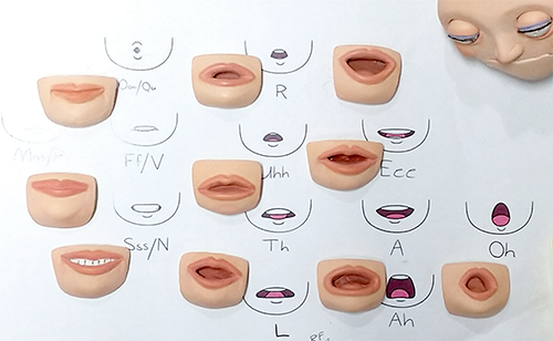 (画像③)口の置換えパーツ。日本語の母音(あいうえお)+αで複数体作ります