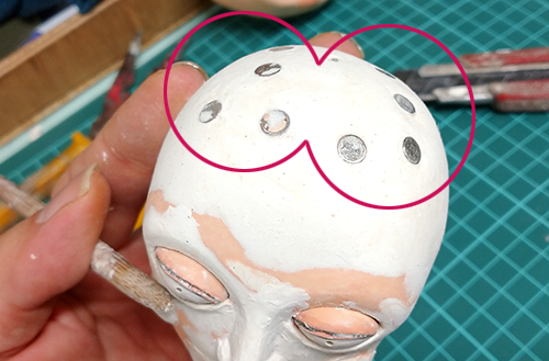 (画像⑤)頭頂部〜後頭部にかけてマグネットを埋め込みます。こうするとワイヤー