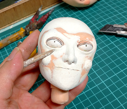 ちなみに本体(顔・ボディ)の材料は基本的に石粉粘土ですね。