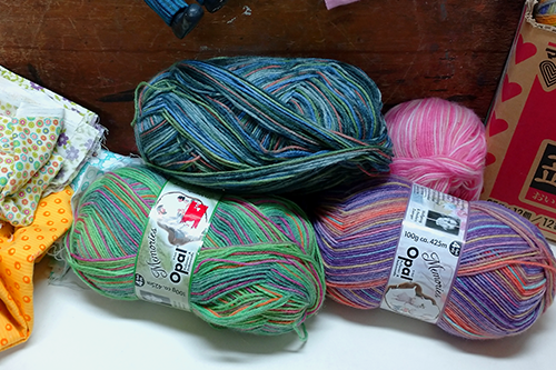 使用する糸ですが、私の場合はいろいんな色が混じっている「コットン混紡タイプ」の4本撚りというのを主に使用します。(画像①)これをバラしながら、なるべく同系の色でまとめていくと全体としてけっこう良い感じの色合いになっていくと思います。そして織り込んでいく方法ですが、私は「和紙ワイヤー」というのを使って、髪を折り込む部分にこのワイヤーを巻き付け、1本の糸のように束ねながらまとめていきます。(画像②)