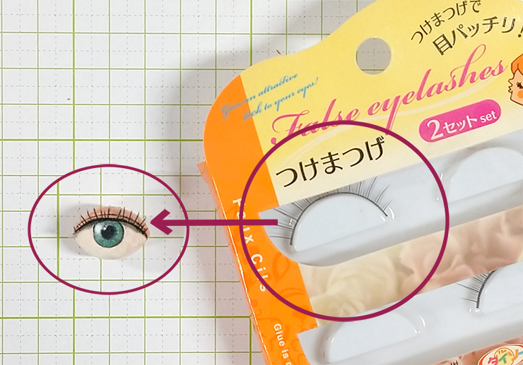 まつ毛については、100均などで売っている市販の付けまつ毛(ストレートタイプ)を使用しています。一般的には女子フィギュアに使いますが、男子もこれが無いと変な感じになるので、私はどちらにも使用してますね。